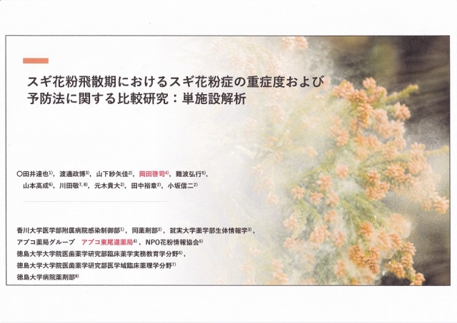 【演題】スギ花粉飛散時期におけるスギ花粉症の重症度及び予防法に関する比較研究:単施設解析