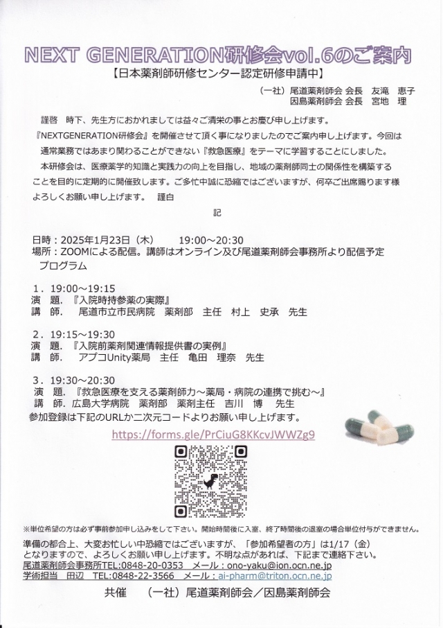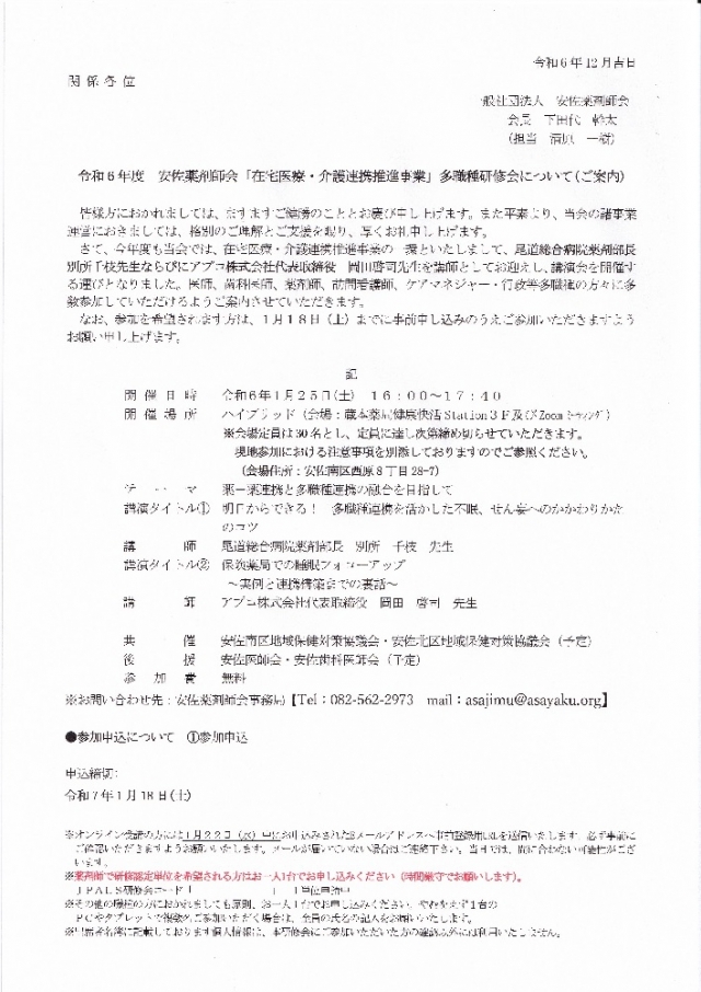 【開催】ハイブリッド(広島県薬剤師会館2階ふたばホール)
